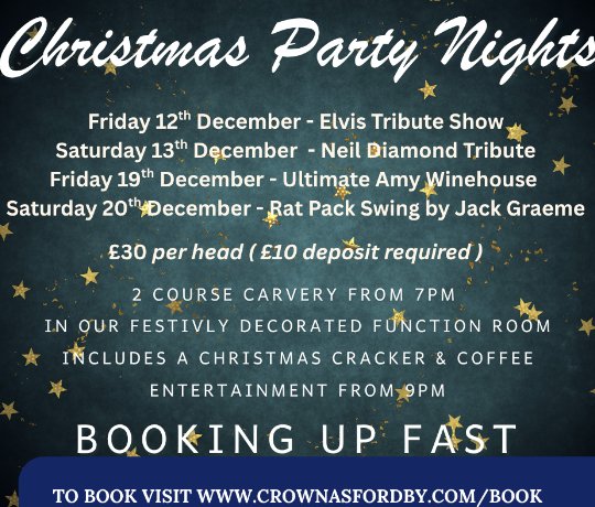 Christmas Party nights 2025 Fri 12th December 2025 Sat 13th December 2025 Fri 19th December 2025 Sat 20th December 2025